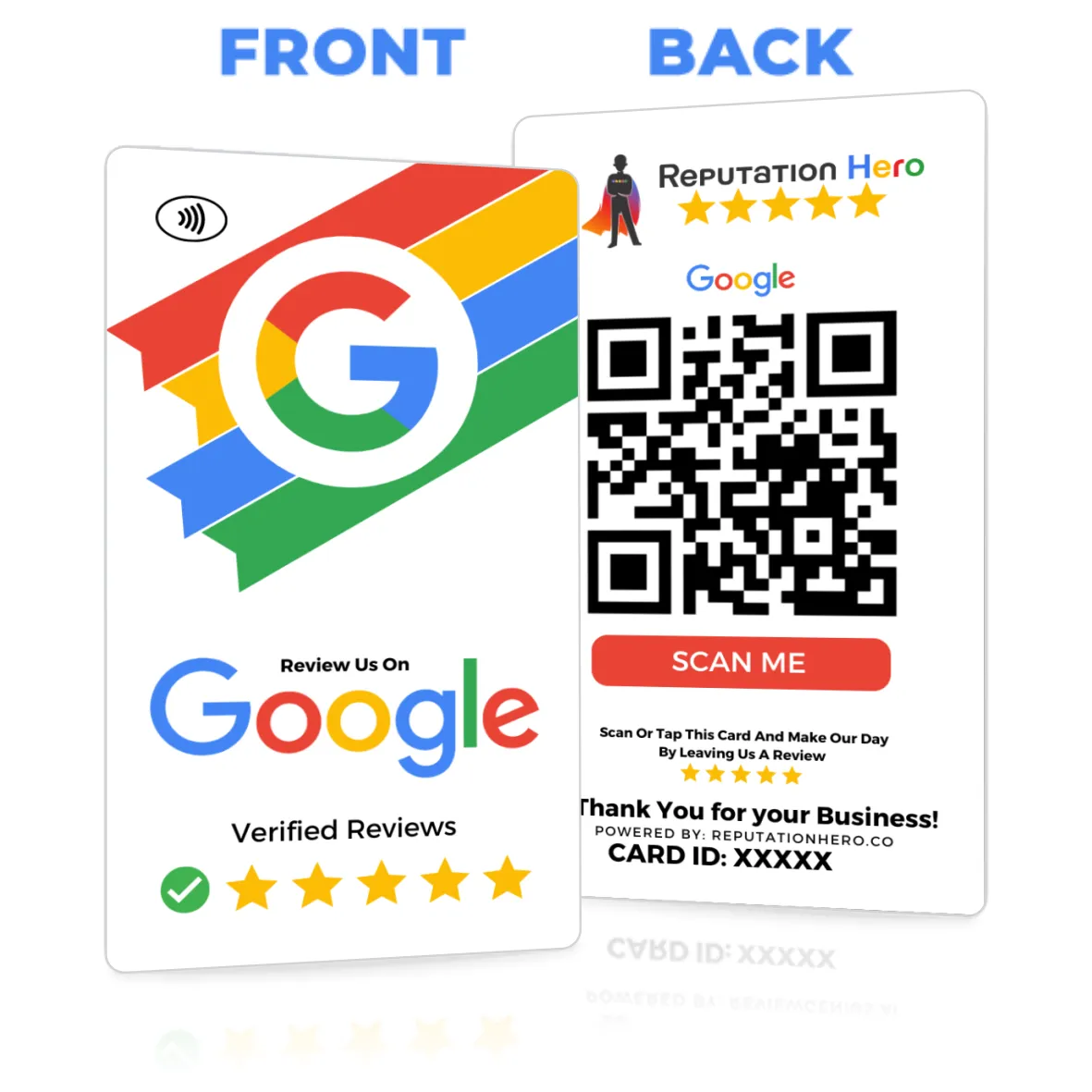 They can tap or scan the card. Reputation Hero cards use NFC and QR Code technology compatible with any device